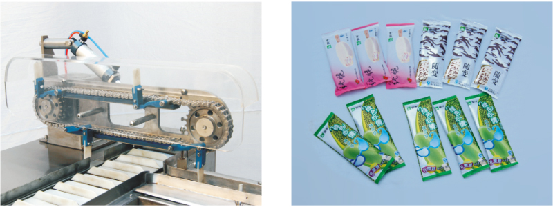 适配产量为13000~15000支/小时花色雪糕自动生产线;该机多种变化,冰棒、冰淇淋、 切片线等块状、条状、冷冻食品包装。